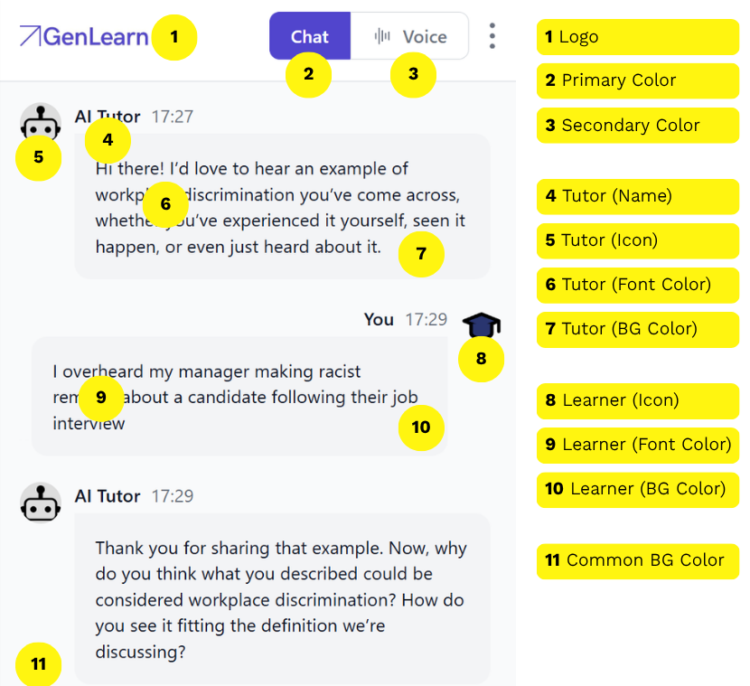 Use when you want to brand your Learner-facing Conversations with your logo and colors, icons and names